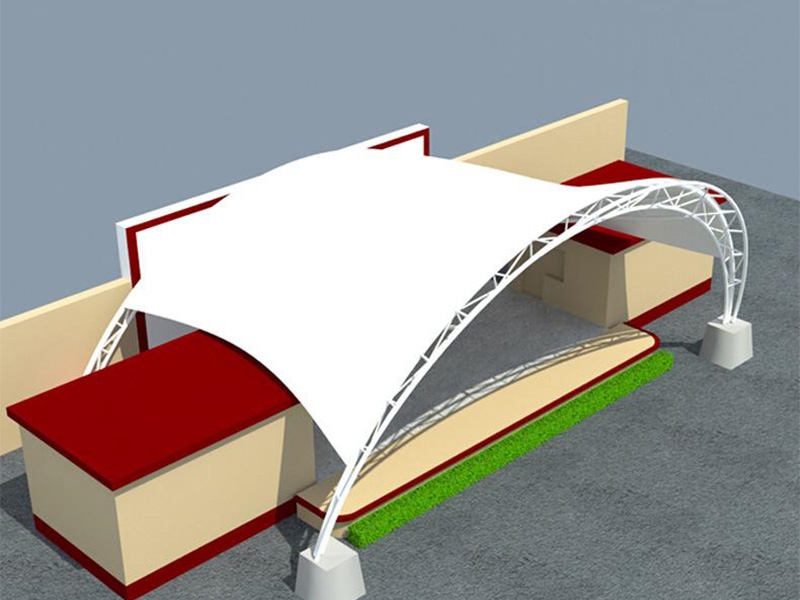1、舞臺張拉膜結構的共同曲面外形使其具有激烈的雕塑感,膜面經過張力到達自平衡。