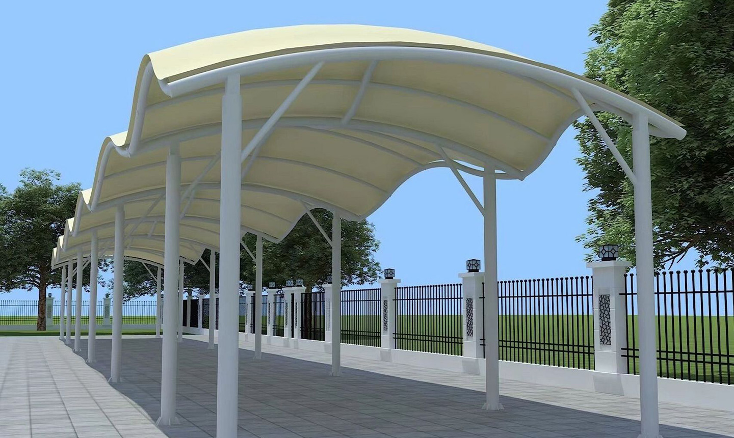 對(duì)于膜結(jié)構(gòu)建筑來(lái)說(shuō),首先要發(fā)揮抵御各種天氣現(xiàn)象的作用,比如說(shuō)自然現(xiàn)象的日曬雨淋等會(huì)對(duì)建筑結(jié)構(gòu)有的內(nèi)部空間造成的影響,還要保持建筑物內(nèi)部人們生活環(huán)境的舒適度。在使用這樣的材料建筑的時(shí)候,我們要考慮好選擇什么樣的材料來(lái)應(yīng)對(duì)當(dāng)?shù)剌^普遍的天氣的狀況。對(duì)于室內(nèi)的透光性以及很好的通風(fēng)的效果,也是張拉膜景觀設(shè)計(jì)的較為突出要在意的一點(diǎn)。